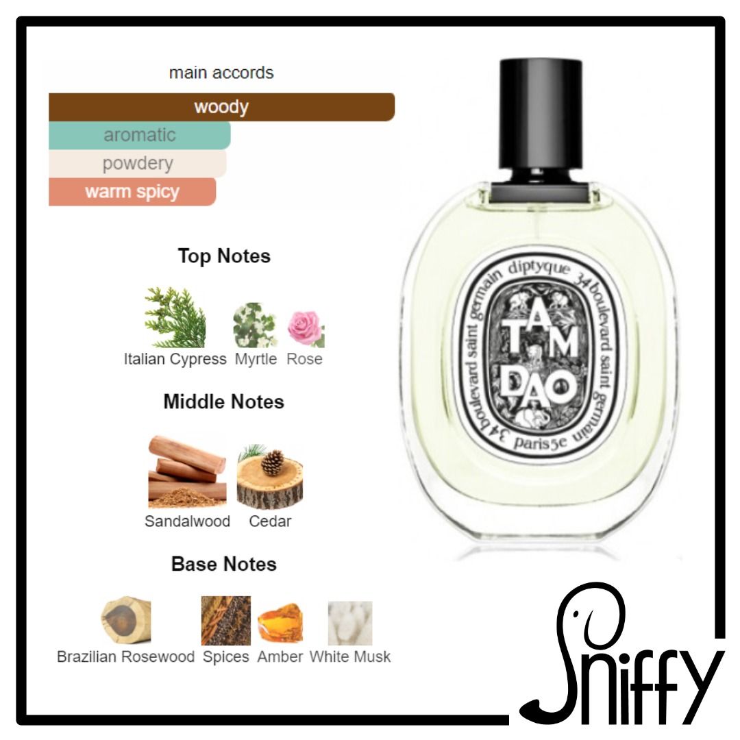 롬브로단로와 탐다오는 완전히 다른 개성의 향수입니다. 롬브로단로가 플로럴 그린 계열이라면, 탐다오(Tam Dao)는 따뜻하고 우디한 계열입니다.